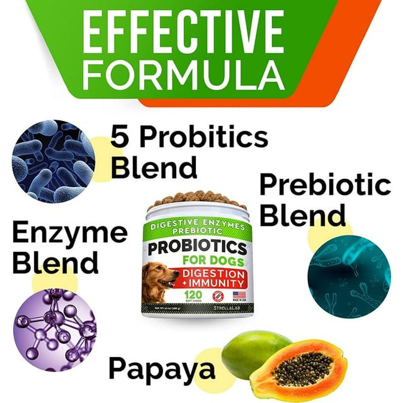 - Support Healthy Tummy - packed with all essential probiotic and prebiotic, fiber and enzymes, these probiotic chews for dogs will help easy varios stomach issues like gas, diareah, sensitive or upset stomach, constapation, gas, acid, loose stool, bad breath etc.