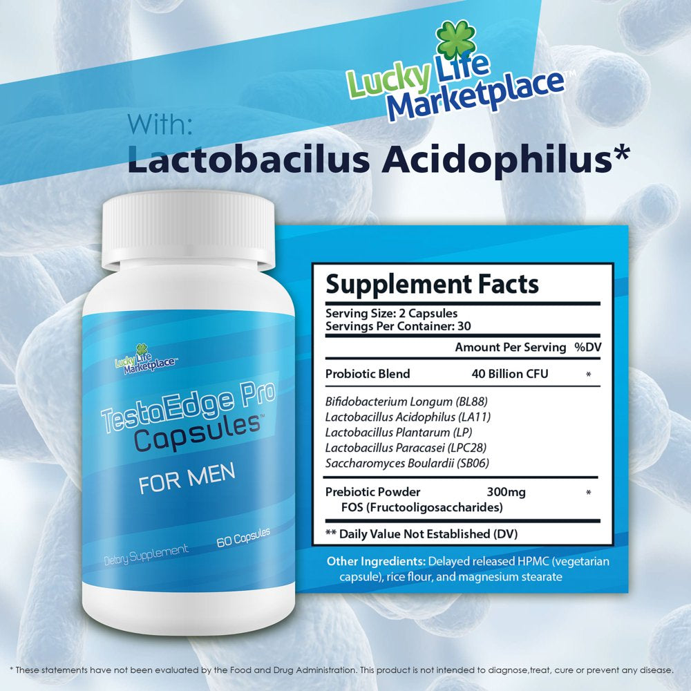 Testaedge Pro Capsules - Probiotics for Men - Premium Probiotic Formula for Men’S Health - Gut Health - Digestive & Immune Health - Support Mood, Energy, & Healthy Hormone Production - Male Probiotic