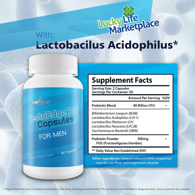 TestaEdge Pro Capsules - Probiotics for Men - Premium Probiotic Formula for Men’s Health - Gut Health - Digestive & Immune Health - Support Mood, Energy, & Healthy Hormone Production - Male Probiotic
