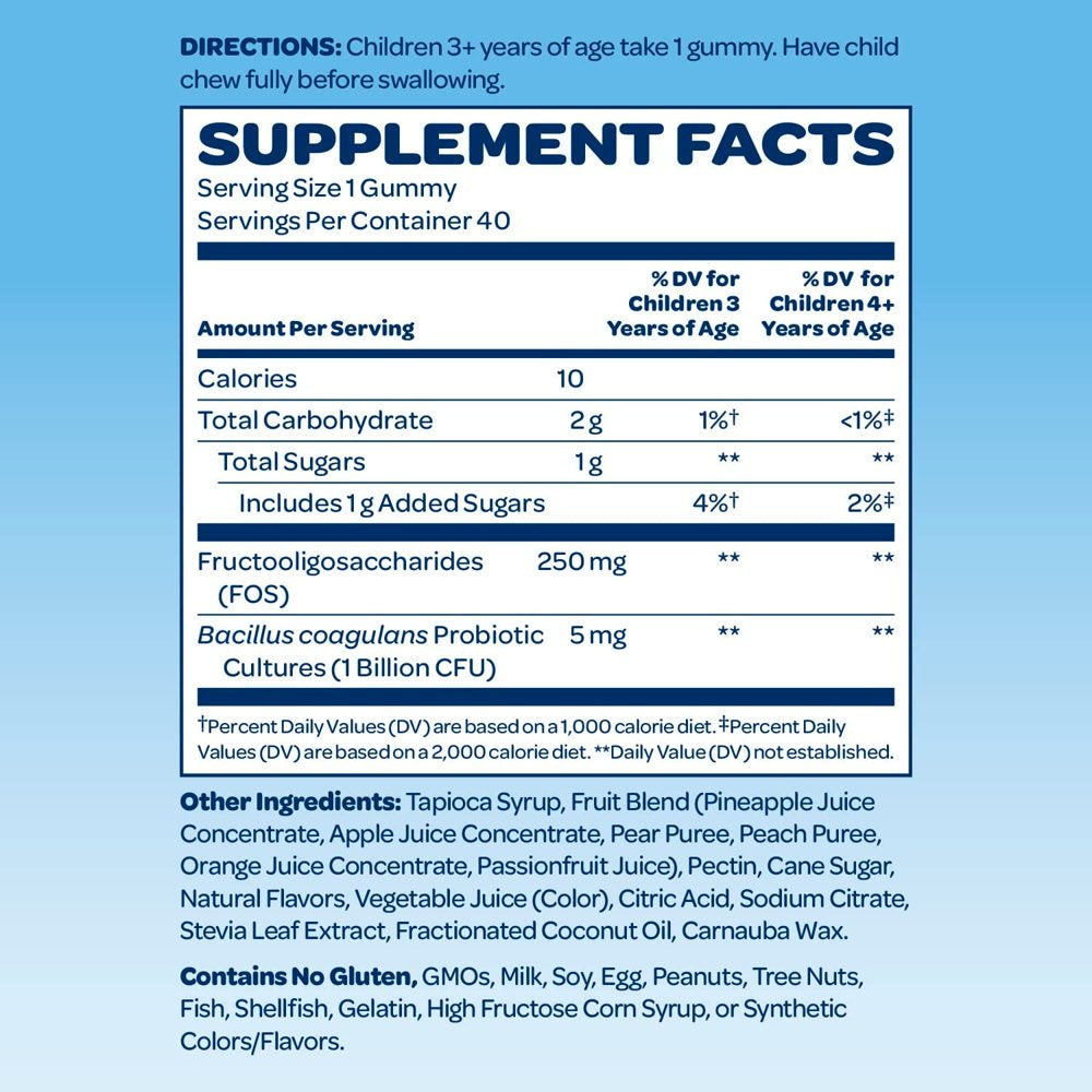 - Digestive Health: Our unique chewable probiotics and fiber blend help support digestive health, and regularity for kids, and aid in kids' gut health.