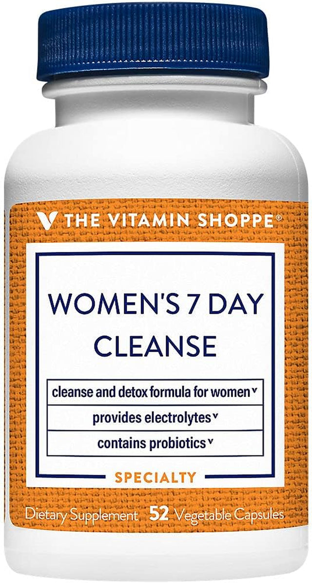 Cleanse and detox formulaProvides electrolytes and probioticsSuitable for everyday wellness-seeking womenFree of dairy, gluten, and soy We all deserve a healthy refresh every now and then. Formulated to help you hit "reset," The Vitamin Shoppe brand Women's 7 Day Cleanse offers a natural detox through healthy bacteria, targeted herbs, and essential nutrients. This advanced formula features a blend of fiber to support digestion, the probiotic Bacillus coagulans for regularity and immune health, plus electrolytes for hydration.