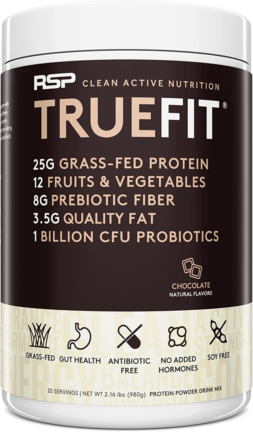 Truefit Meal Replacement Shake Protein Powder, Grass Fed Whey + Organic Fruits & Veggies, Keto, Fiber & Probiotics, Gluten Free