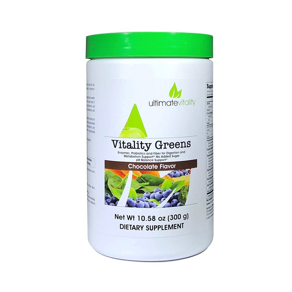 Ultimate Vitality Greens - Green Superfood Detox Powder - Powerful Antioxidant and Detoxification Support with Plant Enzymes and Probiotics - Natural Chocolate Flavor Dietary Supplement - 30 Servings