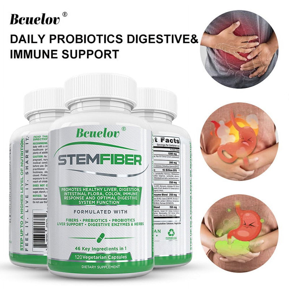 Shelf life: 2 years Content capacity: 60/120/pcs Storage: Avoid direct sunlight, high temperature and high humidity, please eat as soon as possible after opening. Note: Pregnant women, lactating women and those with liver insufficiency, please consult your doctor first. - Essential Fiber Support: Helps increase daily fiber intake for healthy digestion and cardiovascular function. It helps relieve occasional constipation, promotes regular bowel movements, eliminates harmful toxins in the GI tract and supports healthy gut flora to support colon health. Consuming fiber helps boost your metabolism, which supports healthy weight management and promotes healthy blood sugar and cholesterol levels. - Superior Probiotic Support: The power of 15 billion CFU from a powerful blend of 14 probiotic strains helps strengthen your digestive tract, improving nutrient absorption and vitamin production, supporting intestinal regularity and promoting the growth of good bacteria and Provides deep immune system support. Probiotics help protect the lining of your gut from toxins, allergens, and pathogens that would otherwise enter your bloodstream and cause inflammation and other health problems. - Supports Healthy Digestion: Formulated with 15 plant-based digestive enzymes to help promote efficient digestion of food after meals, better nutrient absorption, and improved energy and mood. Our beneficial digestive enzymes help break down many foods into vital nutrients that the body can absorb more efficiently. Achieving optimal digestion will help eliminate an upset stomach, improve your gut flora, and boost your metabolism, thereby promoting healthy weight loss. -Supports liver detoxification and function: If you eat the wrong foods or drink too much alcohol, you can stress your liver. STEMFIBER® contains key nutrients selected for their ability to help cleanse the liver and support its natural cell regeneration process, support bile production for waste elimination and food digestion, and help boost the natural antioxidant enzyme glutathione (GSH) Produces superoxide dismutase (SOD), which helps fight free radicals. -Nourishes your gut flora: STEMFIBER® is enhanced with prebiotics to help feed and nourish the good bacteria in your GI tract and help keep bad bacteria out. In this way, you can increase the effectiveness of the probiotics as they help strengthen the GI tract. Prebiotics are plant fibers that help create a more nourishing environment, promoting the growth and activity of friendly and beneficial bacteria in the gastrointestinal tract, optimizing gut flora health, digestion, nutrient absorption and optimal immune system function. STEMFIBER® is a complete digestive and immune system support supplement to enable you to live a healthier, more active, more productive life Our gut is complex, filled with nerves, blood vessels and trillions of microbes , forming the so-called intestinal natural ecosystem flora. This is a fundamental part of good health.