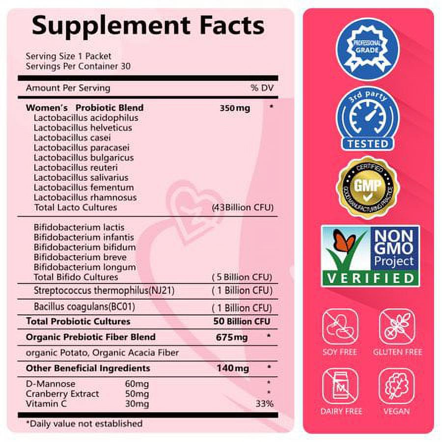 - organic Potato, Organic Acacia Fiber', 'Taestless', and 'D-Mannose 60mg Cranberry Extract 50mg'
