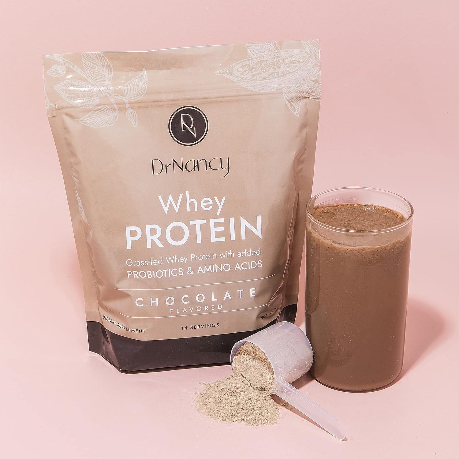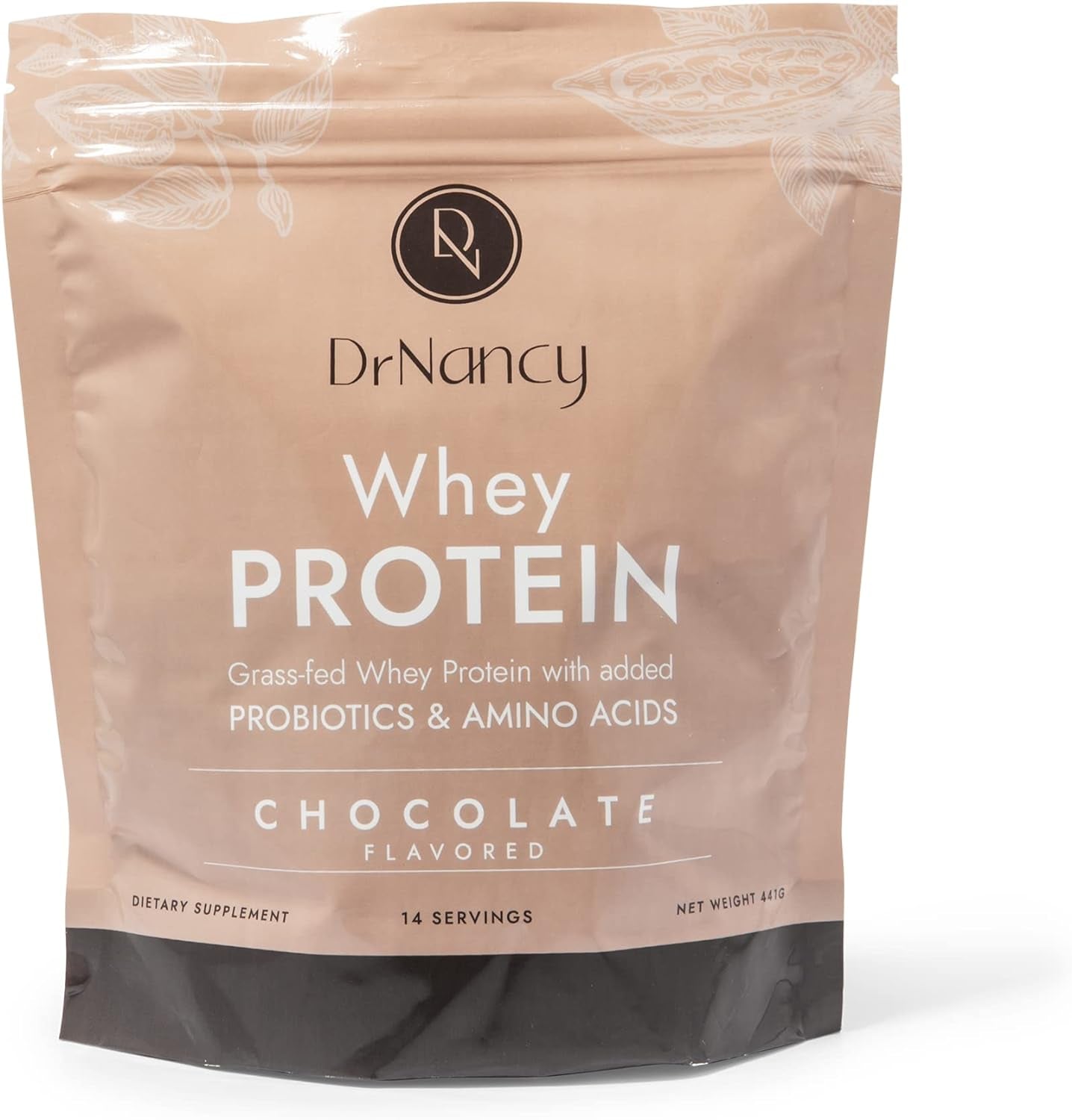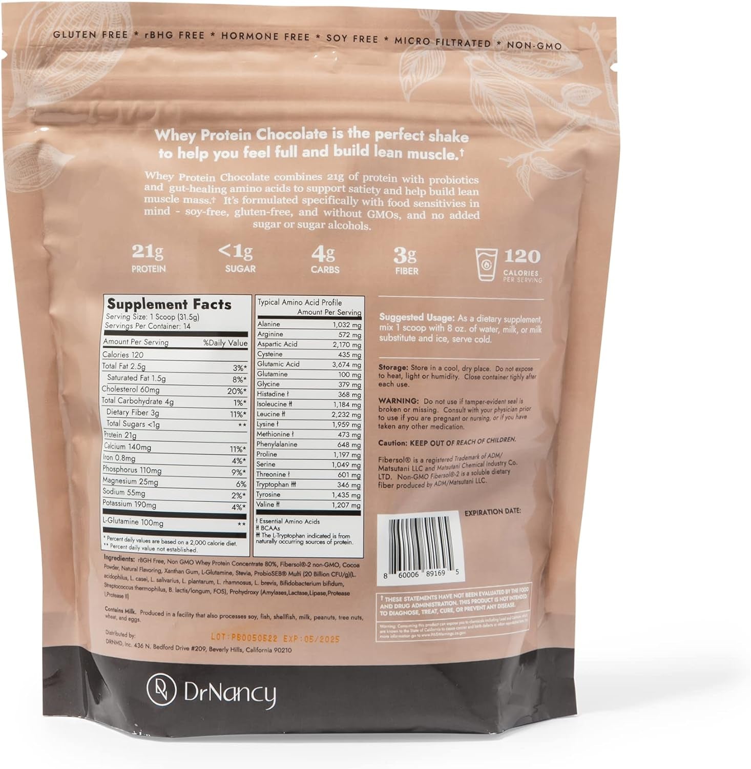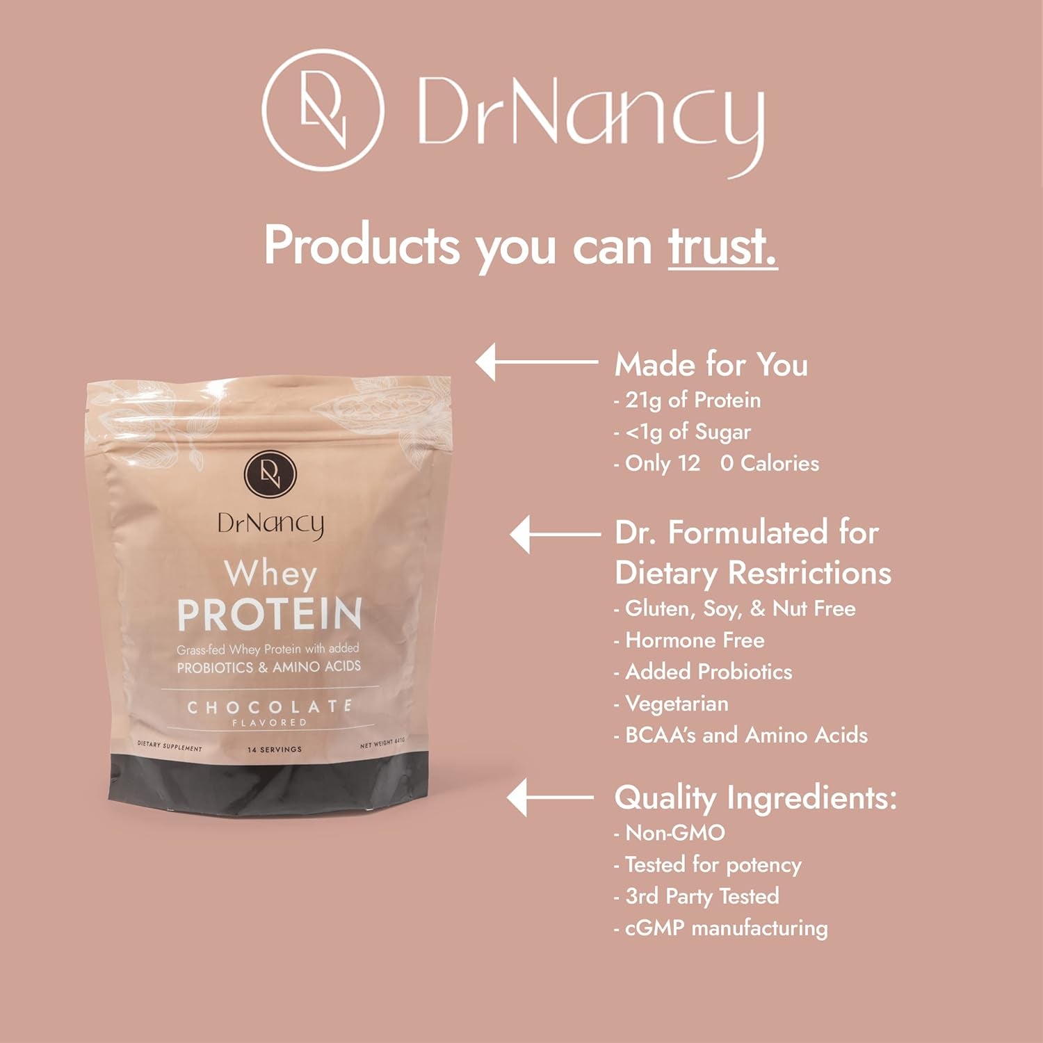 Whey Protein Chocolate by Dr. Nancy MD (14 Servings, 31.5G), 21G Whey Protein, Bcaa’S, with Added L-Glutamine & Probiotics