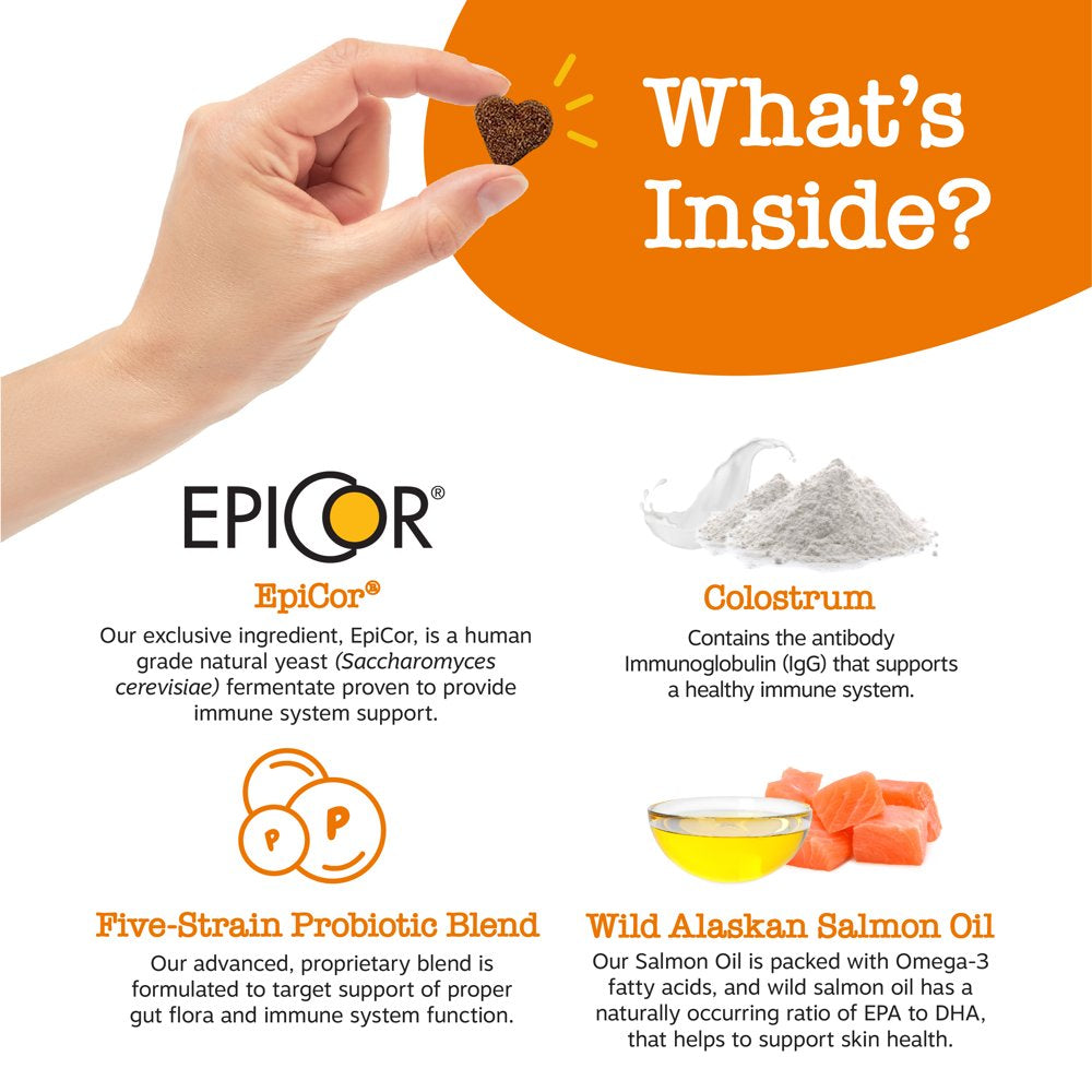 - Enhanced with Epicor - At 80 mg per chew, Epicor contains vitamins, protein, fiber, and antioxidants that are clinically proven to support the body's natural immune defenses to keep your dog healthy.