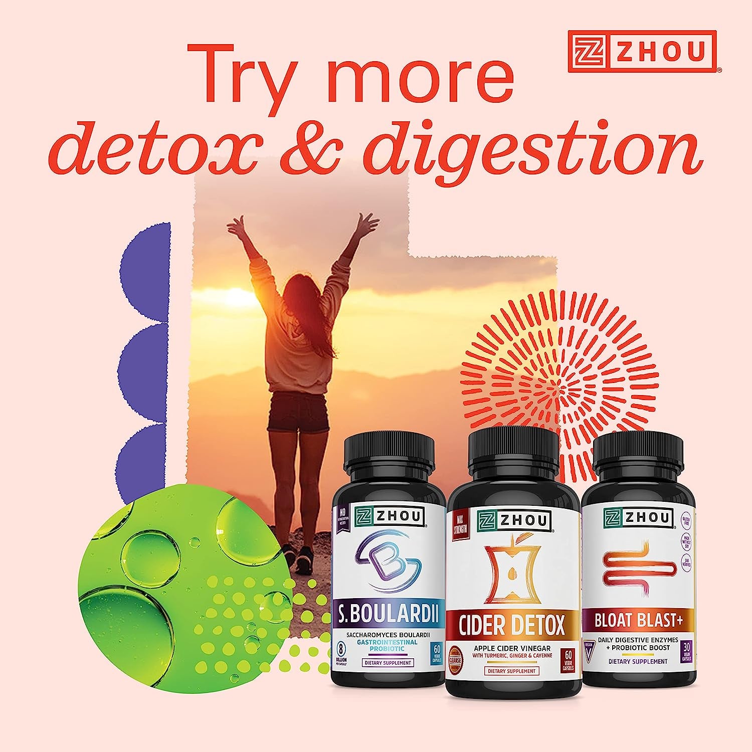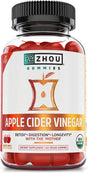 Zhou Nutrition Apple Cider Vinegar Gummies with the Mother, ACV Detox & Cleanse, Natural Probiotics, Digestion Support, Heart Health, Gelatin-Free, Vegan, Gluten-Free, Non-Gmo, 60 Count