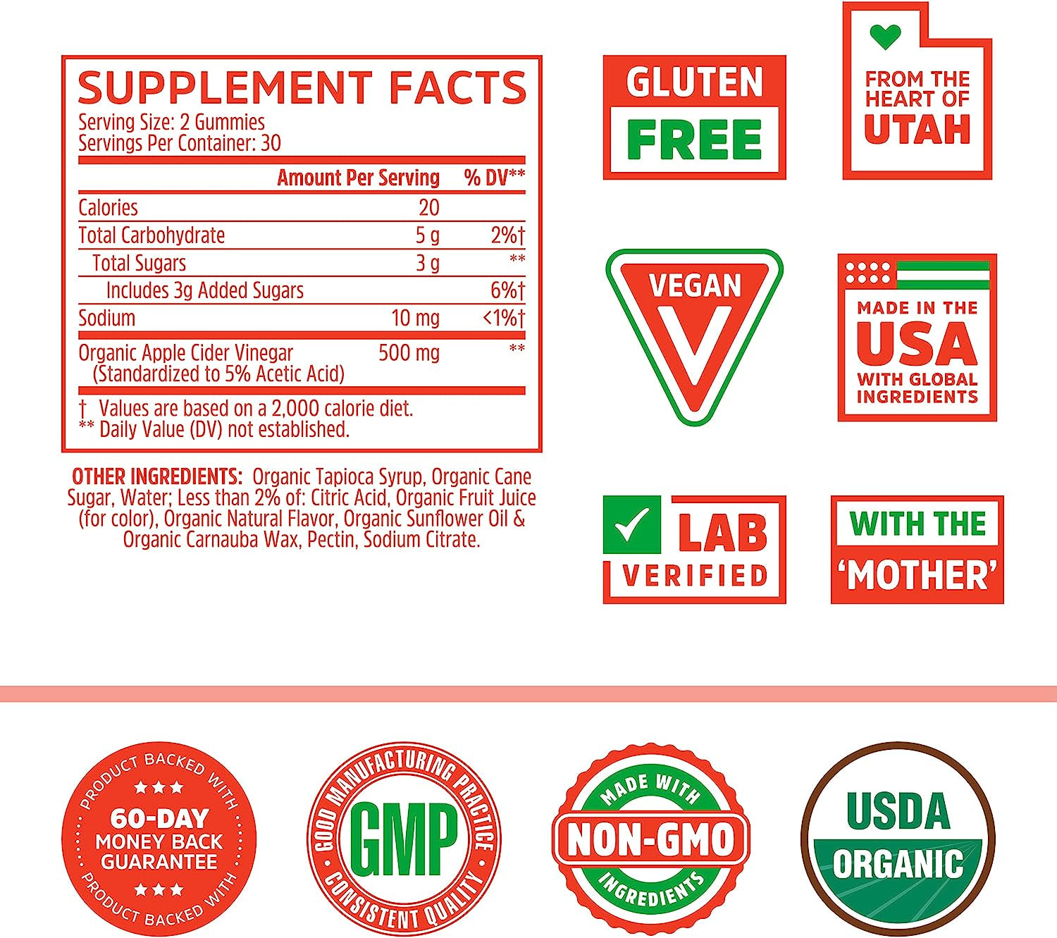 - Made with 'the Mother'. Delivering a maximum strength serving of apple cider Vinegar with 'the Mother,' Our Apple cider Vinegar gummies offer a premium blend of naturally occurring probiotics