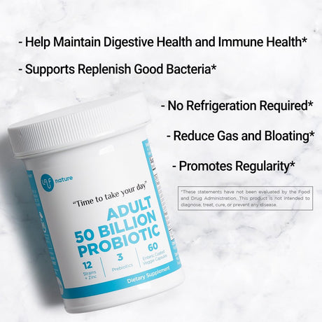 Lauf Nature Adult Probiotics 50 Billion CFU with Prebiotics plus Zinc, 60 Capsules