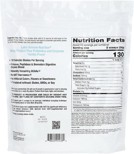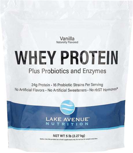 Lake Avenue Whey Protein + Probiotics, Vanilla Flavor, 5 Lb (2.27 Kg), Nutrition