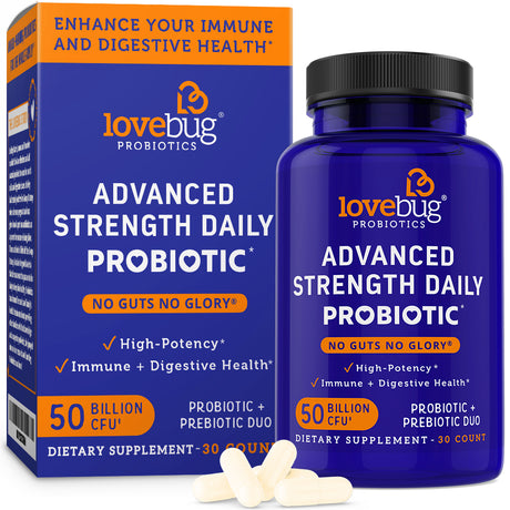 Lovebug Probiotics No Guts No Glory Advanced Strength Daily Probiotic, 30 Count