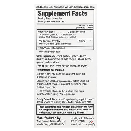 Kyolic Kyo-Dophilus Probiotics plus Enzymes 1 Billion Cfu 60 Caps