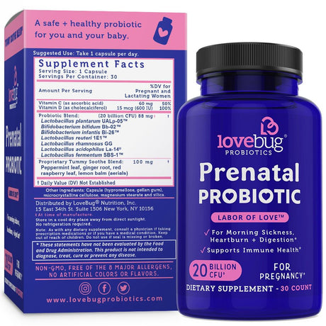 Lovebug Probiotics Prenatal Probiotic, 20 Billion CFU, 30 Capsules