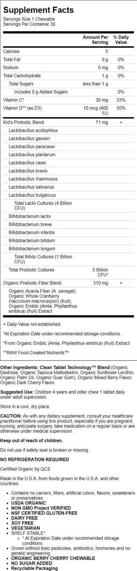 Garden of Life Dr. Formulated Probiotics Organic Kids Berry Cherry Shelf Stable 30 Chewable Tablet