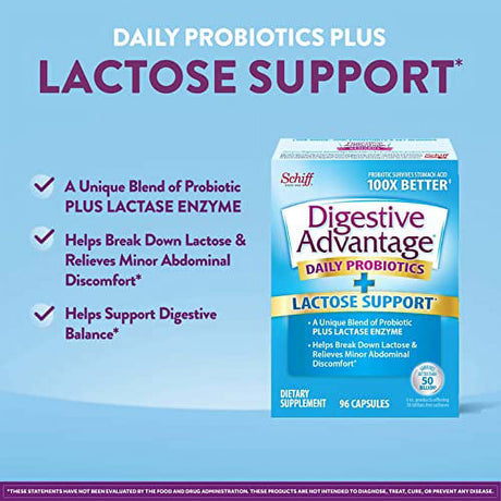 Digestive Advantage Daily Probiotics Lactose Support plus Lactase Enzyme 32 Capsules