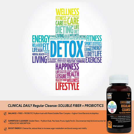 Clinical Daily Colon Cleanse Detox Supplement with Probiotics Glucomannan Bentonite Clay 90 Capsules