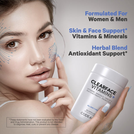 Codeage Clearface, Pantothenic Acid & Niacin, Skin Vitamins & Botanical Blend, Probiotics, 90 Ct