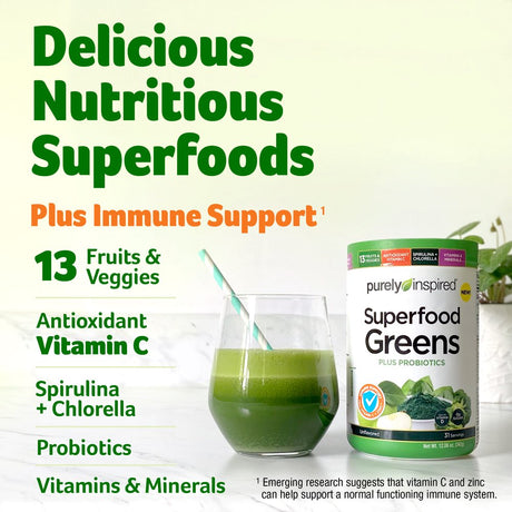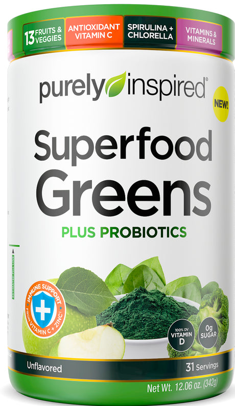 Purely Inspired Superfood Greens + Probiotics, Immune Support Powder, Unflavored, 31 Servings