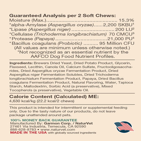Naturvet Healthy Probiotics and Digestive Enzyme Supplement for Dogs, 70 Soft Chews