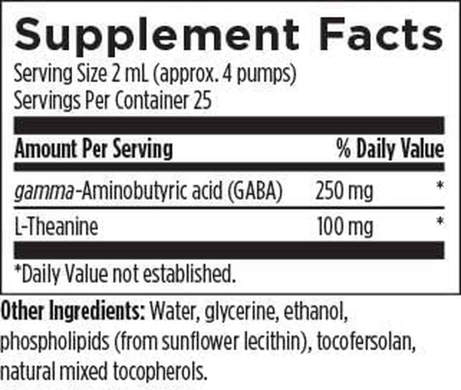 • Easy Liquid Form - Each 2 mL serving (4 pumps) of this formula provides 240 mg of GABA and 100 mg of L-theanine.