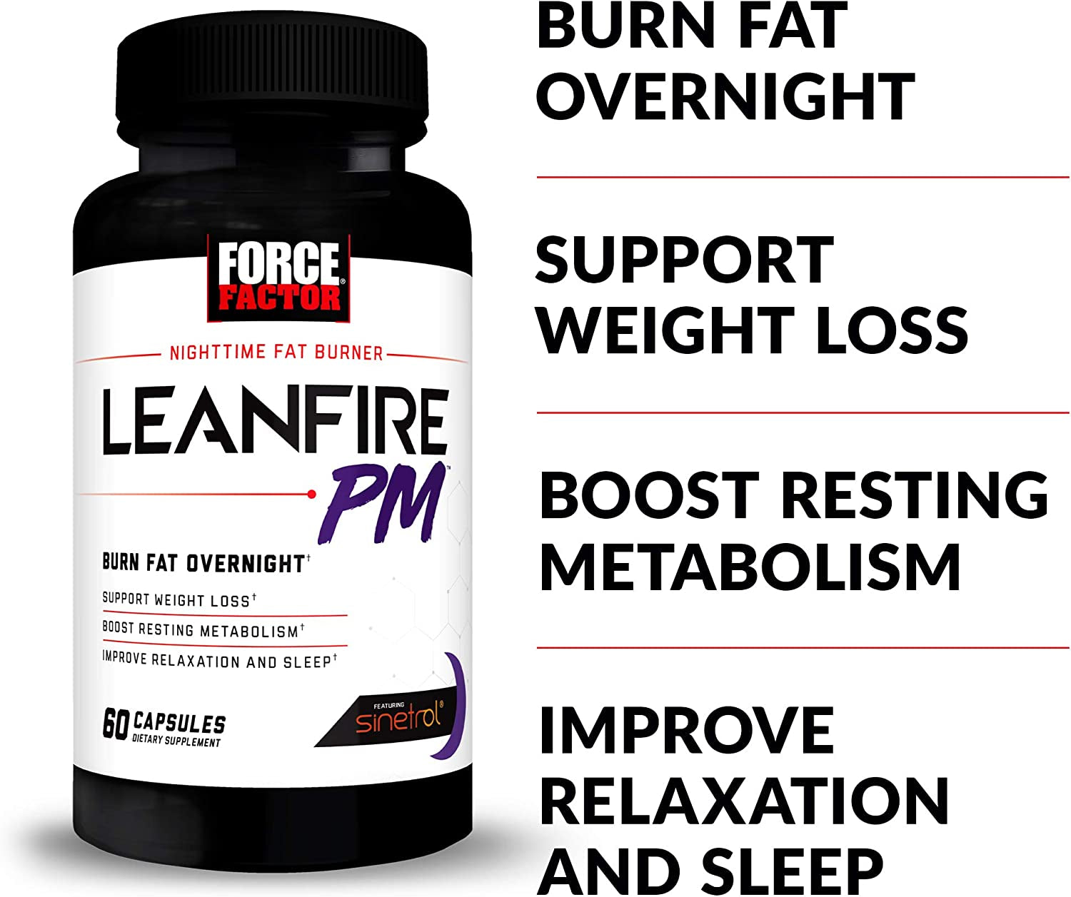 Force Factor Leanfire PM Weight Loss Pills for Women & Men, Fat Burner & Overnight Weight Loss Pills to Burn Fat, Boost Metabolism, Improve Sleep, Powerful Formula for Incredible Results, 60 Capsules