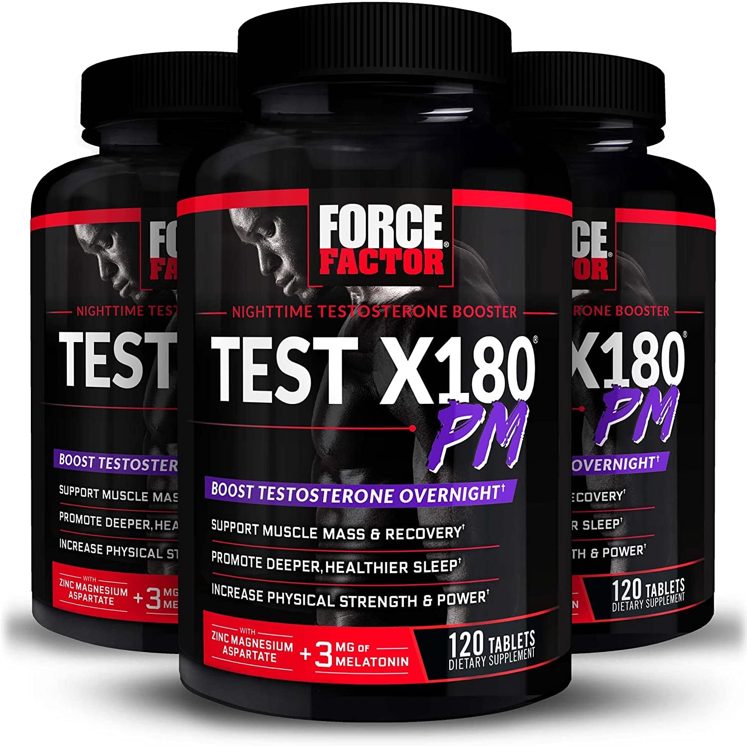 FORCE FACTOR Test X180 PM, 3-Pack, Testosterone Booster for Men, Overnight Testosterone Supplement to Build Muscle, Increase Strength, and Promote Deeper, Healthier Sleep and Recovery, 360 Tablets