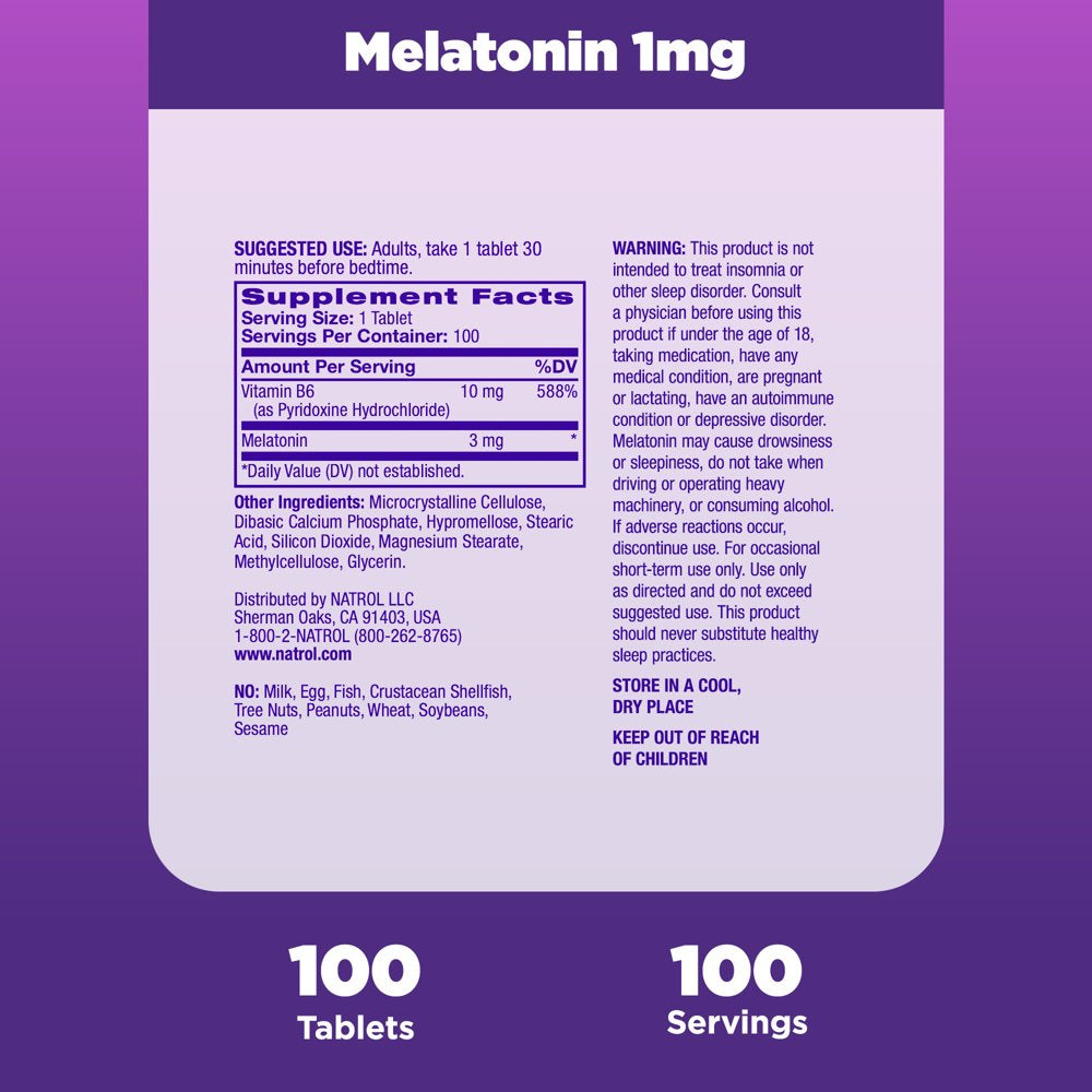 - Natrol Melatonin Time Release Sleep Aid Tablets with 3mg of 99% pure melatonin