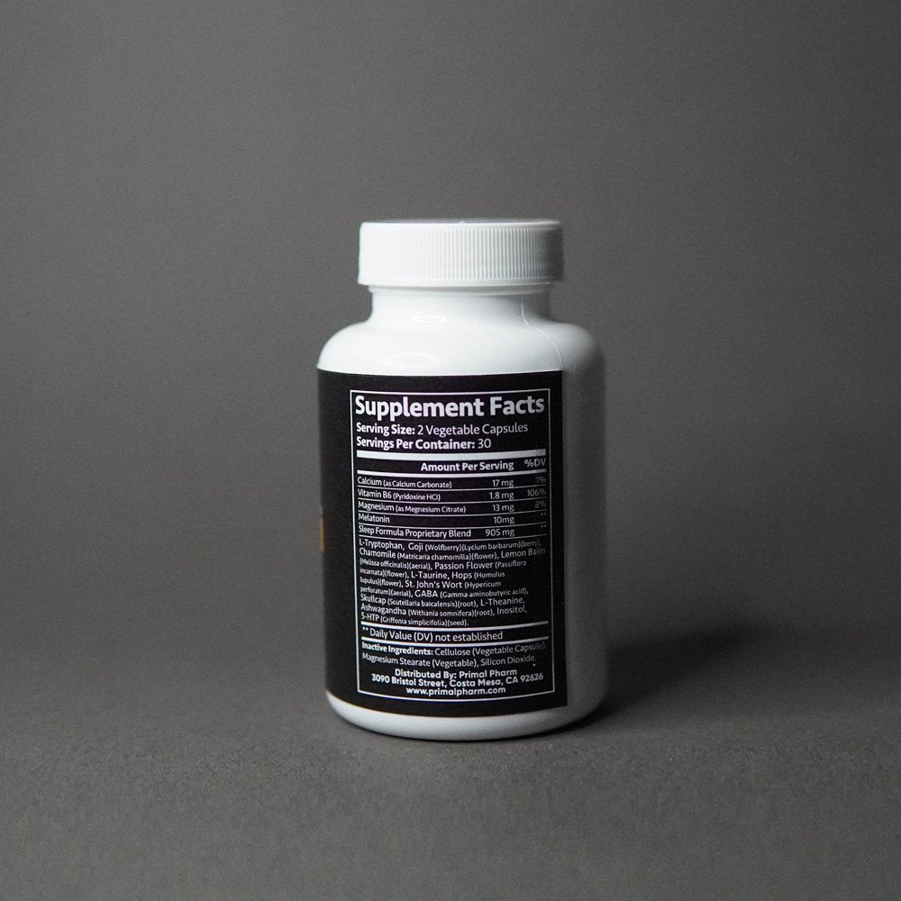 • RESEARCH BACKED VITAMINS & MINERALS - Primal Pharm's SLEEP's core active ingredients include 10mg of Melatonin, 13mg of Magnesium, 17mg of calcium, and 1.8mg of Vitamin B6 all designed to help tell your body it's time for bed.