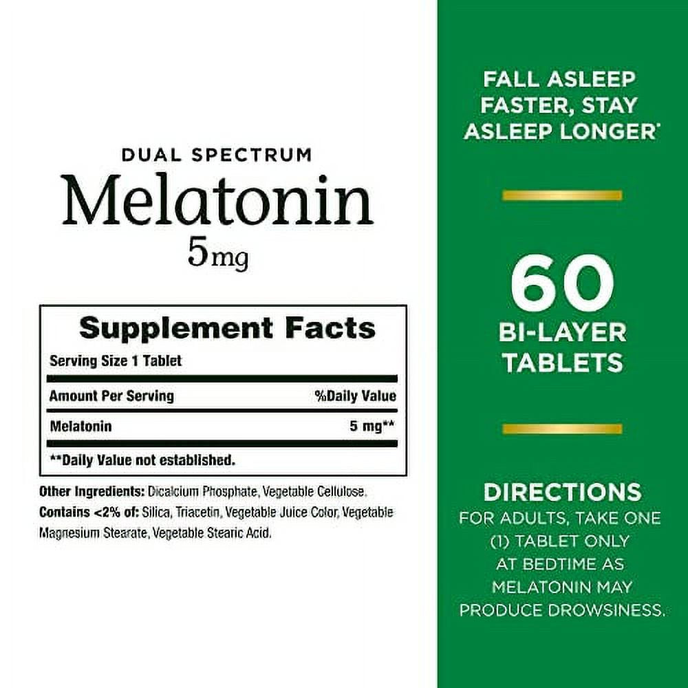 Nature’S Bounty Melatonin 5Mg Dual Spectrum, 100% Drug Free Sleep Supplement, Quick Release and Extended Release, Promotes Relaxation and Sleep Health, 60 Bi-Layer Tablets