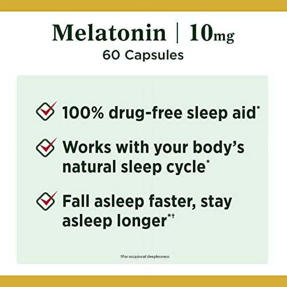Nature's Bounty Melatonin, 100% Drug Free Sleep Aid, Dietary Supplement, Promotes Relaxation and Sleep Health, 10mg, Green, 60 Count