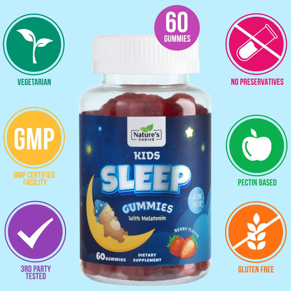 Nature'S Choice Kids Melatonin 1Mg Gummy, 100% Drug-Free & Effective Sleep Supplement Gummies for Children Ages 3 and Up, Chewable Supplement for Restful Sleep, Natural Berry-Flavored - 60 Gummies
