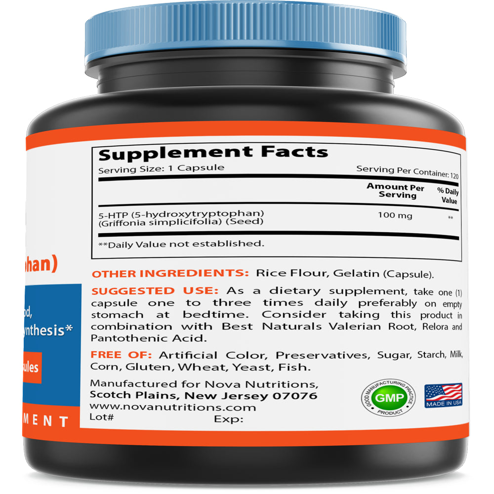 Nova Nutritions 5 HTP 100 mg 120 Capsules, 5-HTP promotes healthy sleep