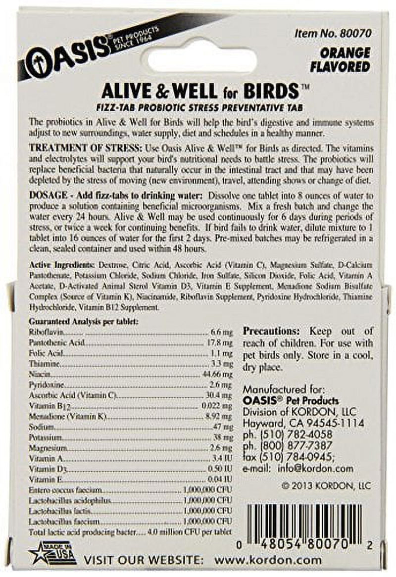 OASIS #80070 Alive and Well, Stress Preventative & Pro-Biotic Tablets for Birds