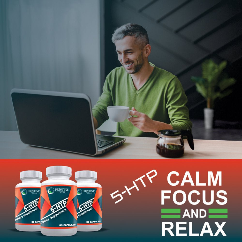 MOOD ENHANCEMENT WITH RELAXATION- Our PRISTINE FOOD 5-HTP natural serotonin supplement may "feel good" chemical in your brain that helps regulate your mood and reduce anxiety and stress. The best way to promote a calm and relaxed mood is by enabling the body's synthesis of serotonin.
