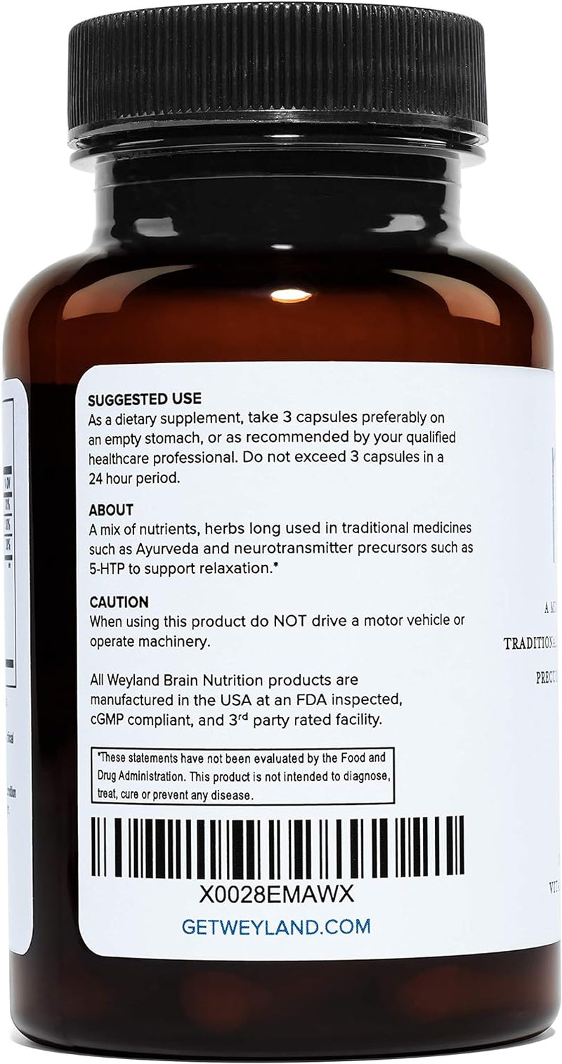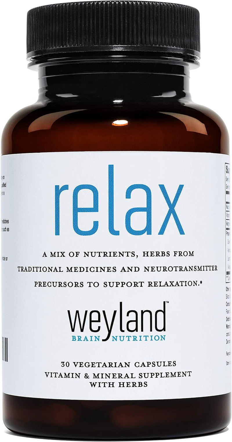 - Each bottle of Weyland: Relax contains 30 vegetarian capsules and is Gluten Free, Dairy Free, and Natural with No Artificial Flavors or Colors.