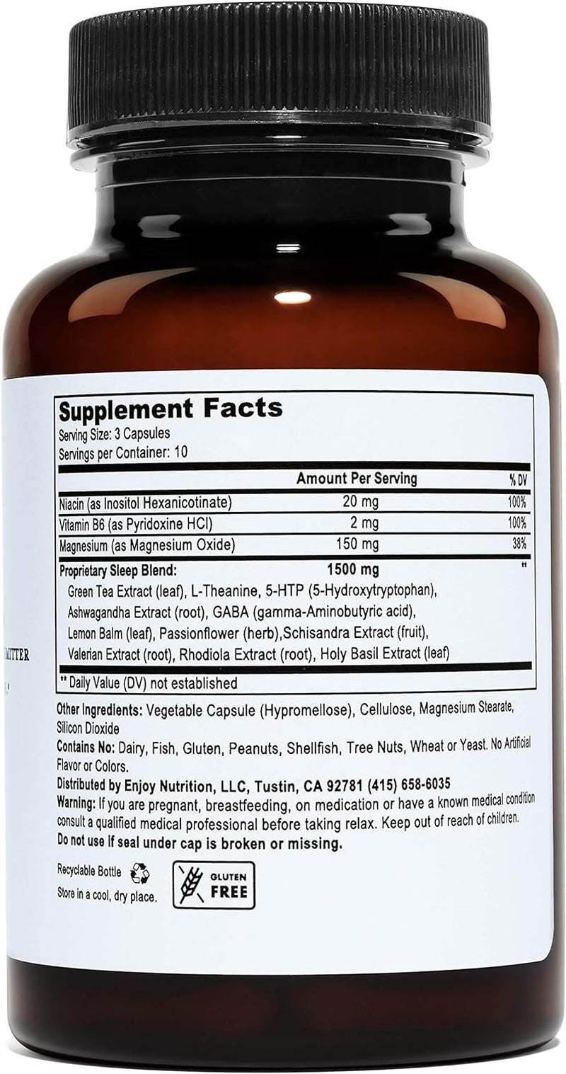 Relax - Natural Sleep Aid - GABA, L-Theanine, Valerian Root, 5-HTP, Lemon Balm - Calm Support, Stress Relief, Sleep Supplement -30 Vegetarian Capsules is backordered and will ship as soon as it is back in stock.
