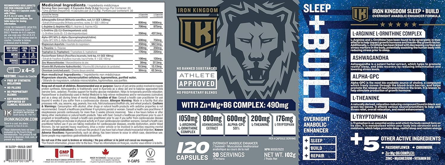 IRON KINGDOM Sleep+Build is a high quality overnight anabolic enhancer. Iron Kingdom is made in Canada in a CGMP Facility. Athlete Approved.