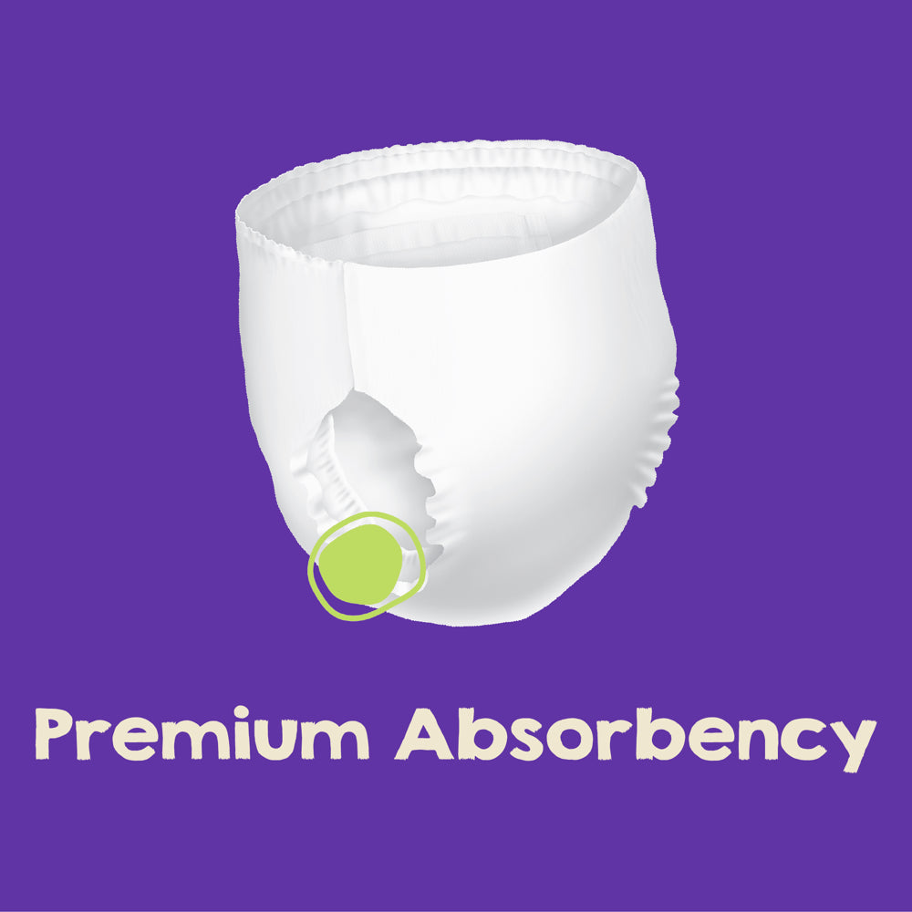 ABSORBENT & COMFY: Stretchable side panels move with the body & maintain a snug fit, while a flexible, ultra-absorbent core locks in wetness & provides effective leakage protection both day & night.