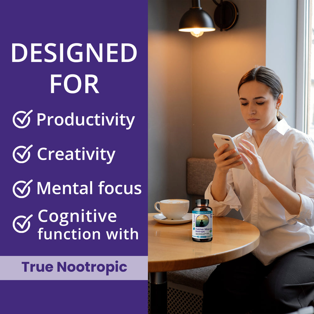 Daily Brain Support : TrueMed Calmer Mind Nootropic dietary supplements are specialized for increasing productivity, creativity, and cognitive and brain function. Enhance Your Memory Performance: TrueMed Calmer Mind Nootropic dietary supplements are made with 500 mg of Ashwagandha Root Powder and 500 mg of GABA among other essential ingredients to support brain and cognitive function, productivity, creativity, and mental focus. Trustworthy Ingredients Supplements: TrueMed Calmer Mind Nootropic supplements are also Made in the USA and UL, GMP, and NPA certified to ensure the highest quality standards for our dietary supplements.
