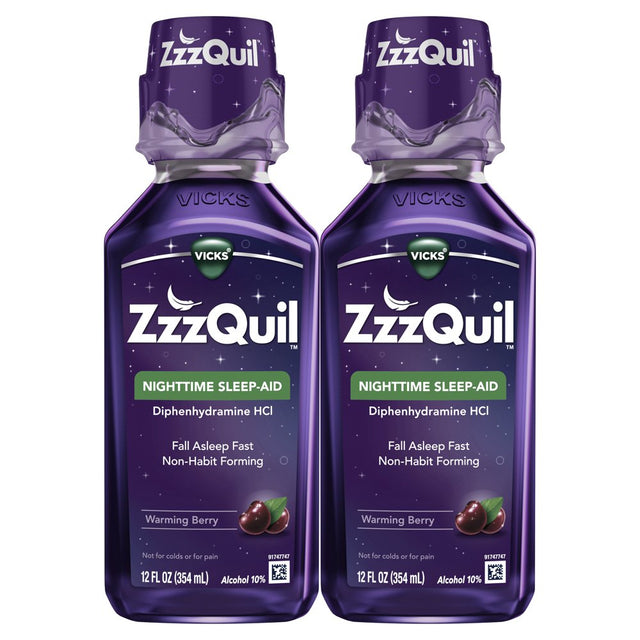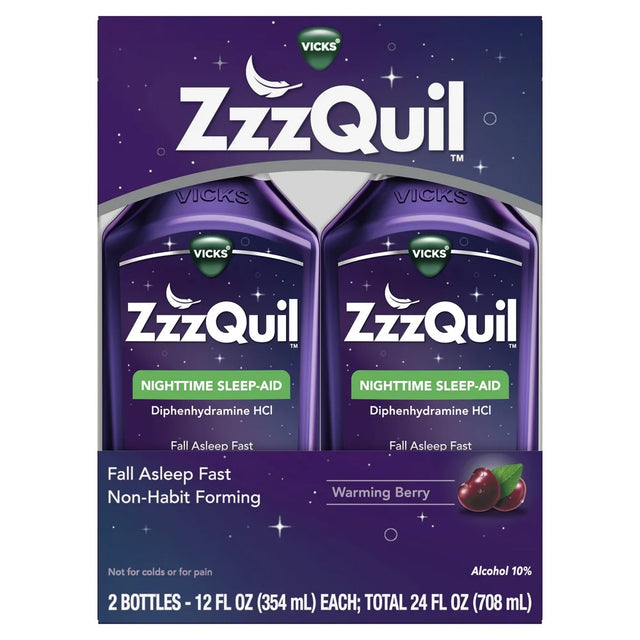 - Vicks ZzzQuil Night Pain, over-the-Counter Sleep Aid Non-Habit Forming, Midnight Berry, 24 fl oz