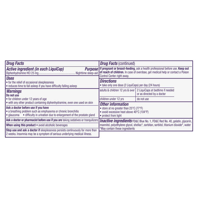 - Vicks ZzzQuil Sleep Aid Liqui-Caps, 25mg Diphenhydramine Hcl, over-the-Counter Medicine, 48 Ct
