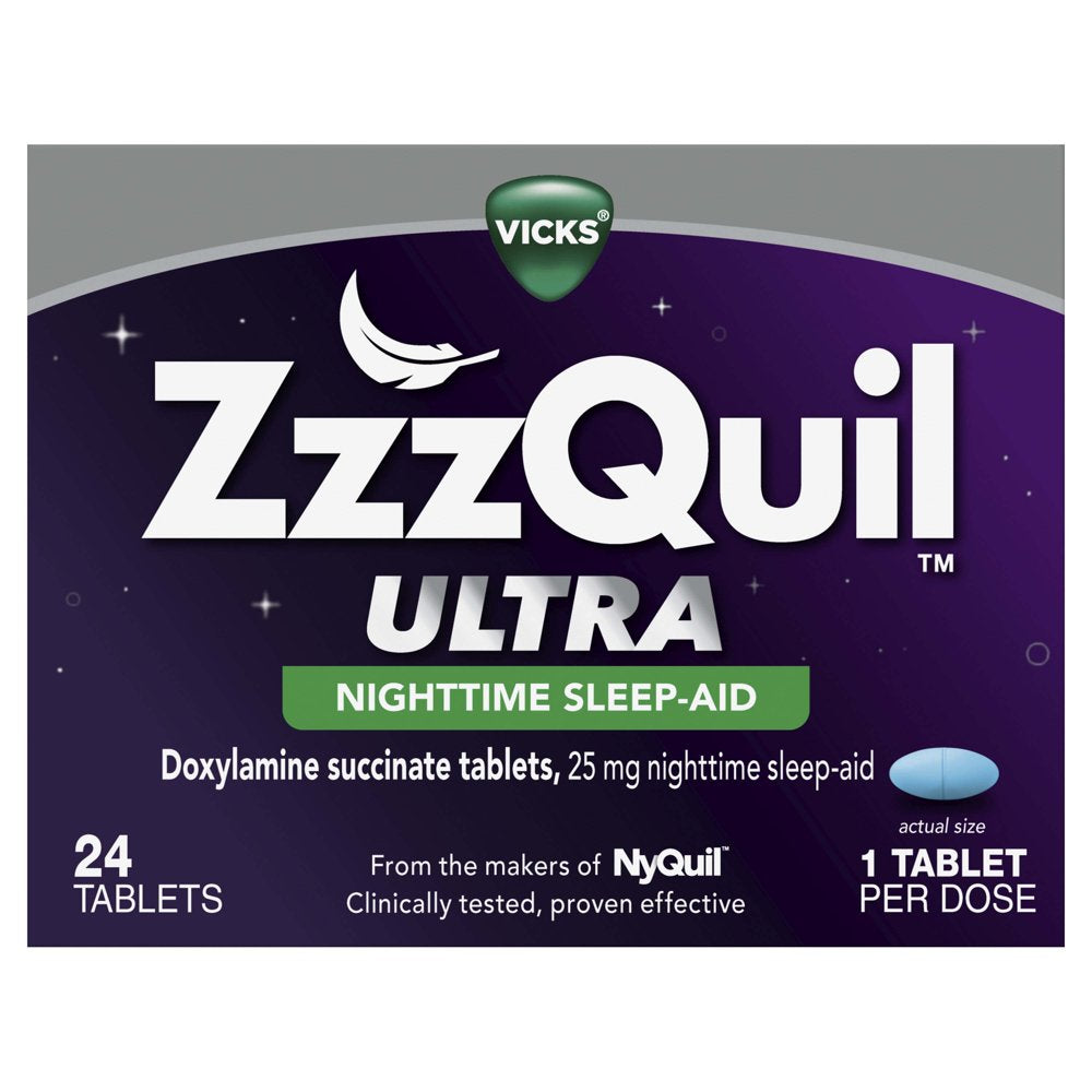 • CLINICALLY TESTED, PROVEN EFFECTIVE: ZzzQuil Ultra tablets contain Doxylamine Succinate, a non-habit forming ingredient that helps you get the sleep that you need. 1 tablet per does. Use as directed. 24 Tablets