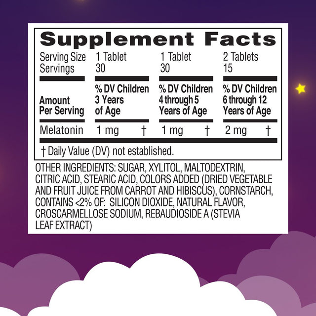 - Each chewable tablet has 1 mg of melatonin to help promote peaceful sleep in kids 3 years +*