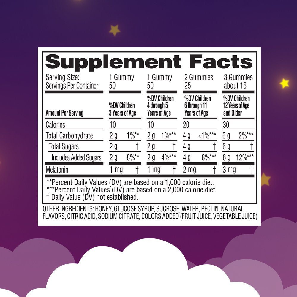 - Each delicious gummy has 1 mg of melatonin to help promote peaceful sleep* in kids 3 years+