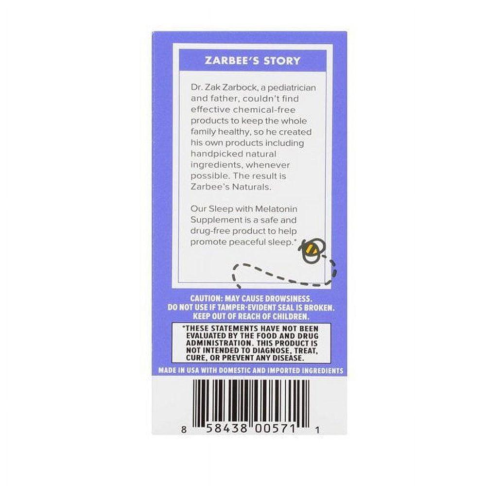 - Zarbee's Naturals remedy your child's occasional sleeplessness with a liquid formula in a yummy natural grape flavor. Our formula contains melatonin, a drug-free & safe ingredient.