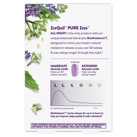 Vicks Zzzquil PURE Zzzs All Night Extended Release Melatonin Sleep Aid, Dietary Supplement, 14 Ct