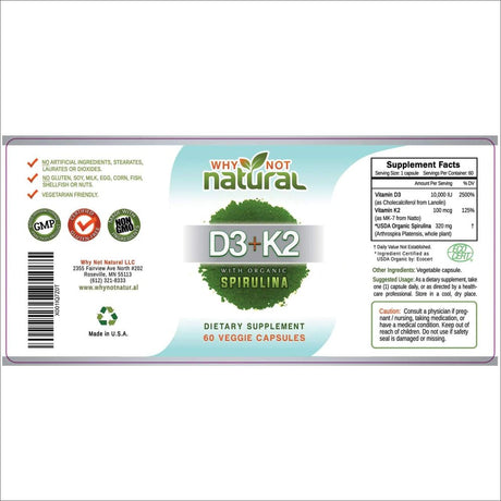 Vitamin D3 10,000 IU and K2 (MK7) plus Organic Spirulina
