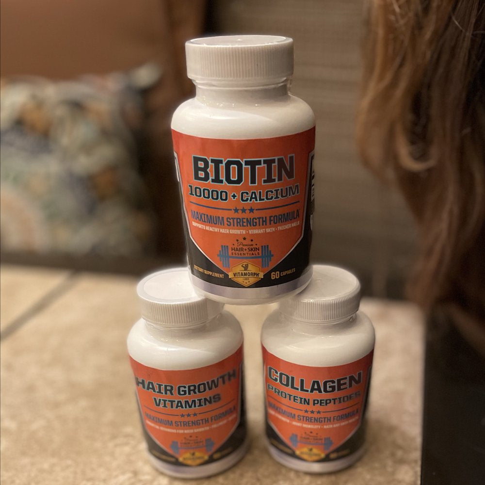 - HAIR, SKIN, NAIL SUPPORT - To maximize hair, skin and nail support, it’s crucial to ingest macronutrients such as protein on a regular basis along with calories that meet daily dietary needs. Hair Growth Vitamins supports possible gaps in the diet to maximize potential hair, skin and nail growth through supplementation.