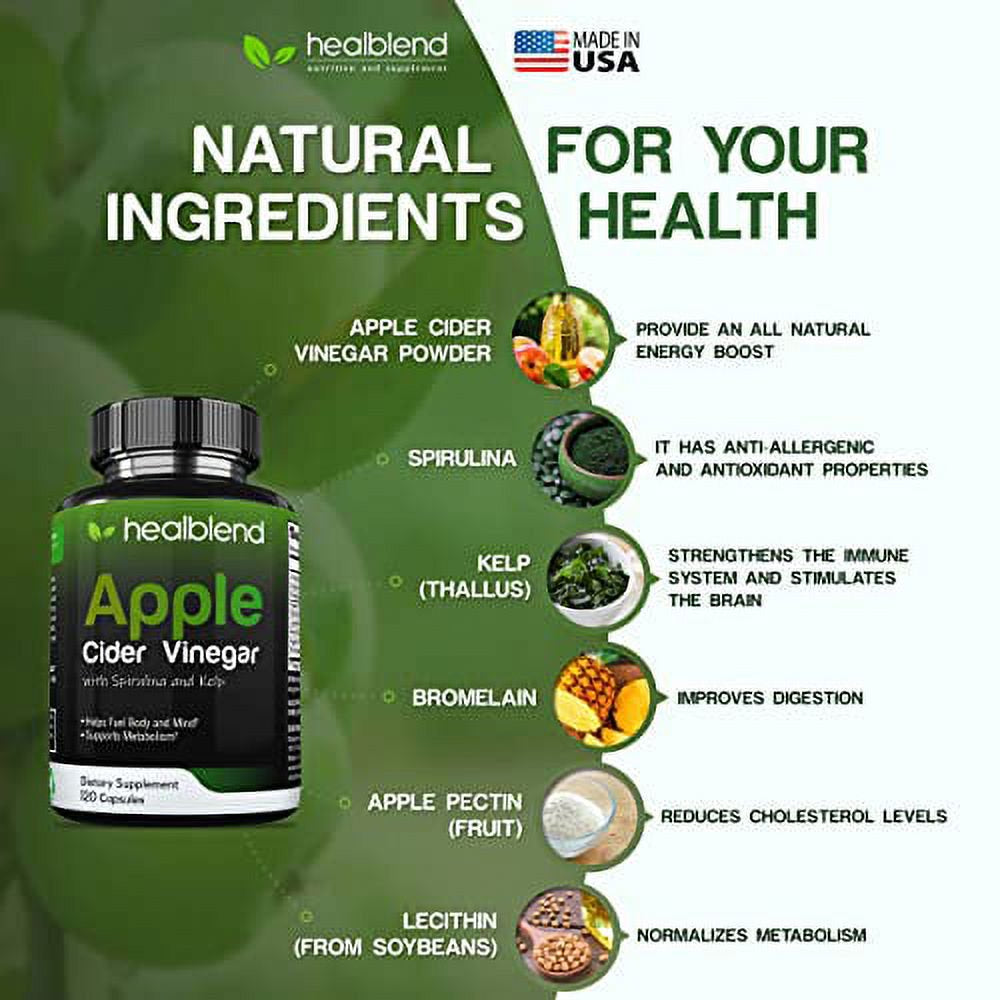 Healblend Apple Cider Vinegar with Spirulina and Kelp – Dietary Supplement - Metabolism, Detox and Immune Support Formula - Keto Diet Pills for Women Men, 120 Capsules WHY KETO APPLE CIDER VINEGAR? You can have an active lifestyle, play sports, enjoy the outdoors, and still be a ball of fire at the end of the day. If you’re looking for extra energy and digestive and immune support, add our Keto Apple Cider Vinegar supplement in your daily routine today! Our Keto formulation provides a perfect dosage of ketones which in turn helps stimulate a metabolic shift from carb dependence. This leads to improvement in training endurance and promotes enhanced mental clarity and focus without the use of stimulants. If you are looking to get rid of reduce calories and detox naturally this is your MUST have supplement. Keto Apple Cider Vinegar with Spirulina and Kelp is the most natural and efficient way to reach ketosis thanks to our extraordinary 1500mg formula that of Apple cider vinegar powder, Spirulina, Kelp, Vitamin B-6 and other essential ingredients.